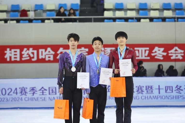 在男子单人滑项目中,田桐赫凭借高质量的发挥以总分214.07分的成绩获得冠军;陈昱东在自由滑中表现优异,以207.98分的总成绩获得亚军,韩文宝以总分204.56分的成绩获得季军。