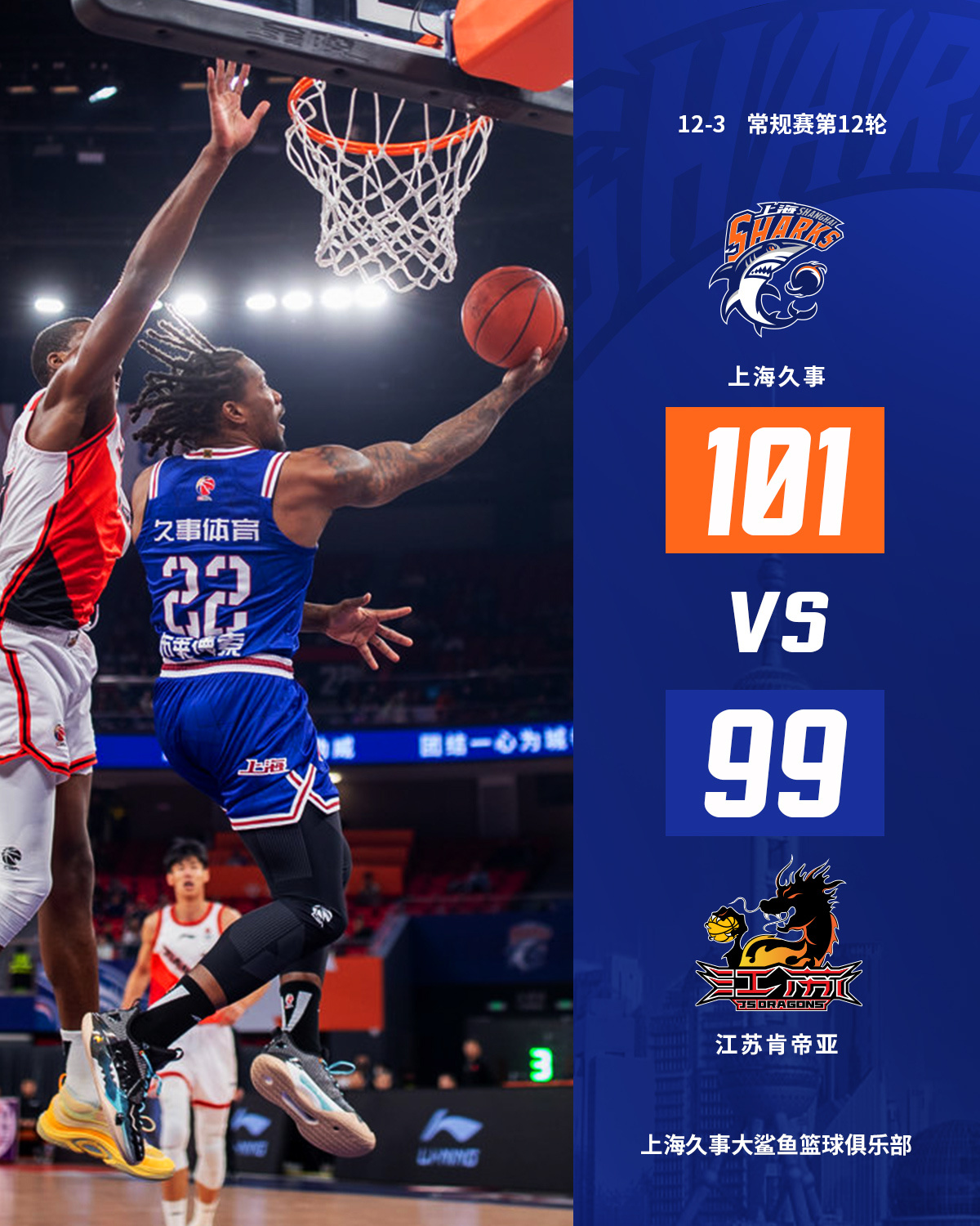 12月3日晚, CBA常规赛第12轮,上海久事队主场迎战江苏肯帝亚队。