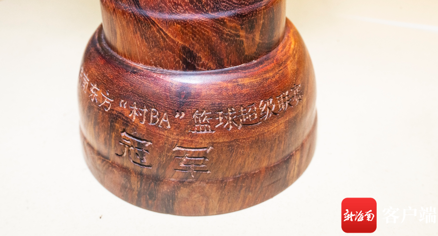 海南东方“村BA”冠军奖杯“鱼鳞洲杯”亮相,由60年树龄的黄花梨雕刻而成。记者李昊摄
