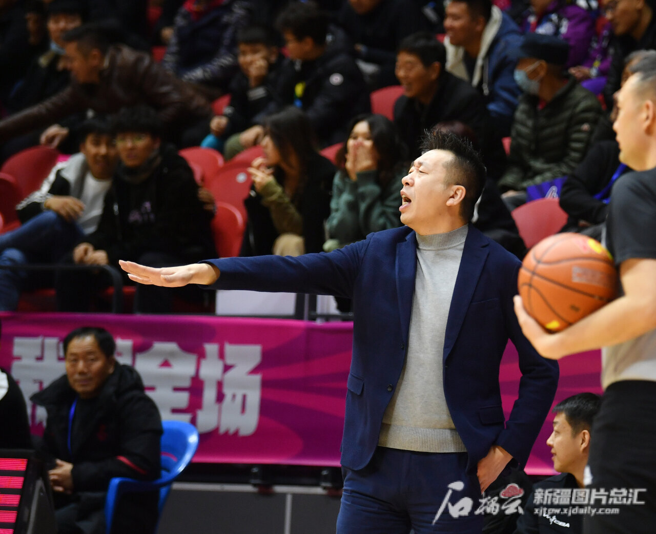 新疆女篮主教练贾楠现场指挥。