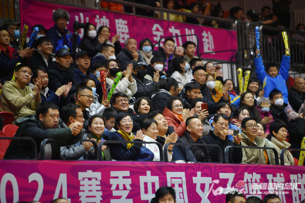 观众为新疆女篮队员的精彩表现热烈欢呼。