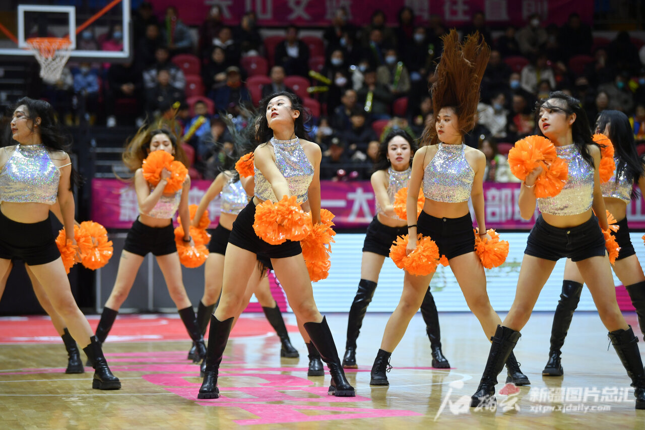 新疆女篮啦啦队员在比赛间隙表演。