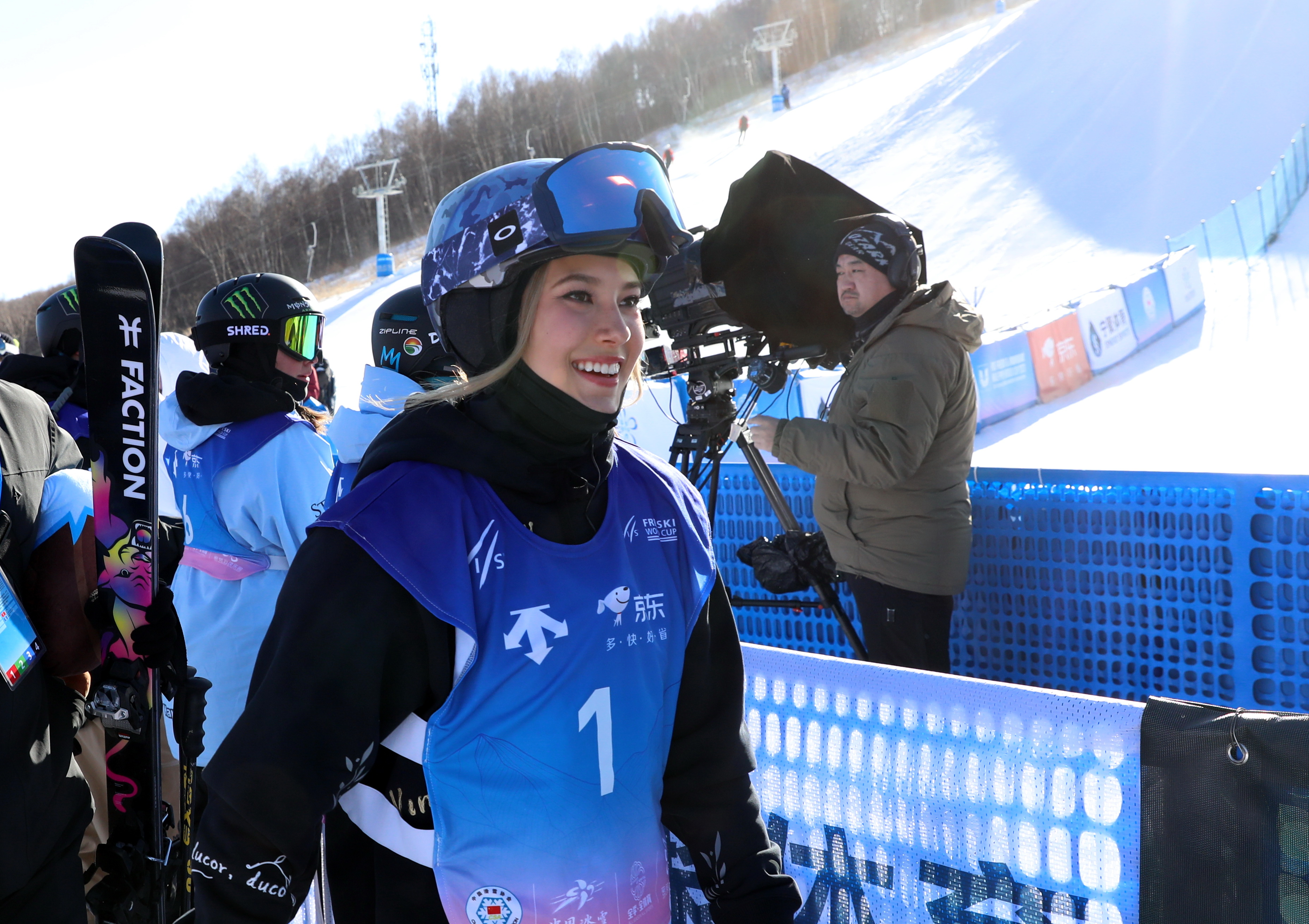 “来崇礼训练比赛很多次了,(相比北京冬奥会)这一次有了很多观众。我最大的梦想,就是分享我对滑雪运动的热爱,今天能有这样一个机会去分享和表达,我非常开心。”谷爱凌说。