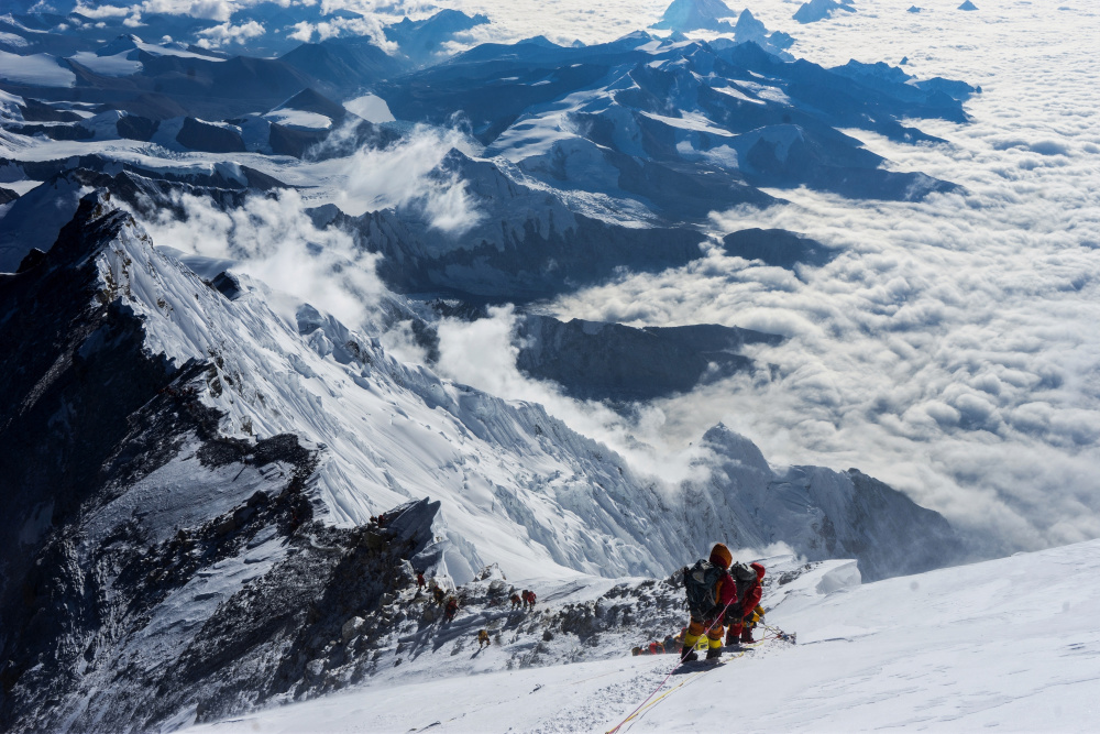 这是中国登山者在攀登珠峰第三台阶(2019年5月24日摄)。新华社发(川藏高山向导协作队供图)