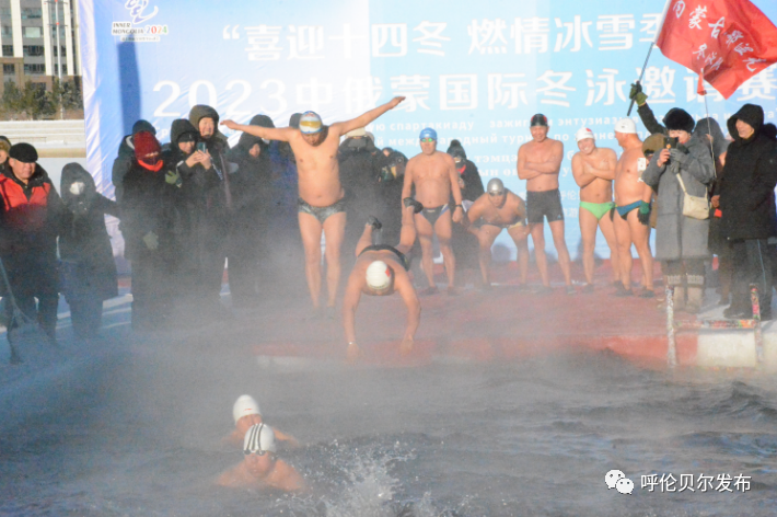 12月17日,“喜迎十四冬燃情冰雪季”2023中俄蒙国际冬泳邀请赛在呼伦贝尔冬泳基地举行。来自俄罗斯赤塔市、乌兰乌德市及呼伦贝尔市冬泳协会代表队的百余名冬泳爱好者参加活动。