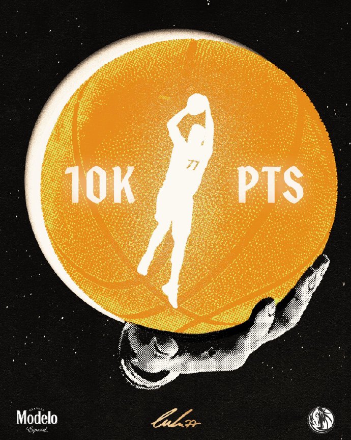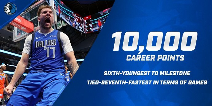 本场比赛后,东契奇的NBA生涯总得分突破一万分大关,358场拿到一万分也是现役最快,超越了詹姆斯的368场。