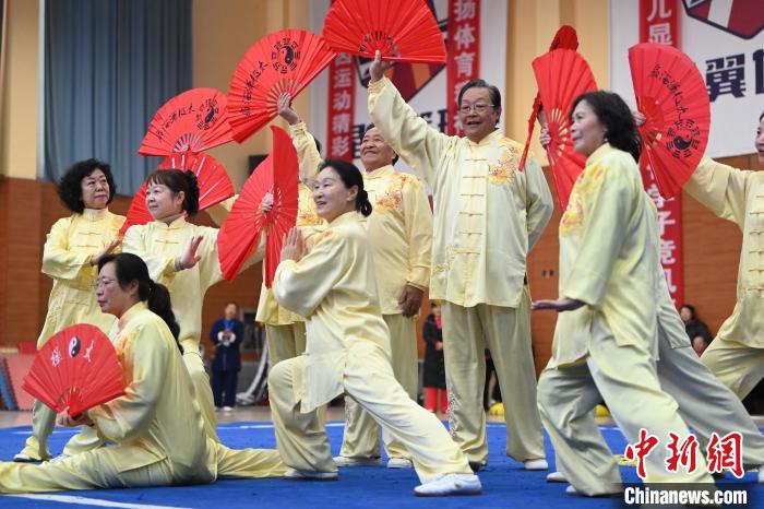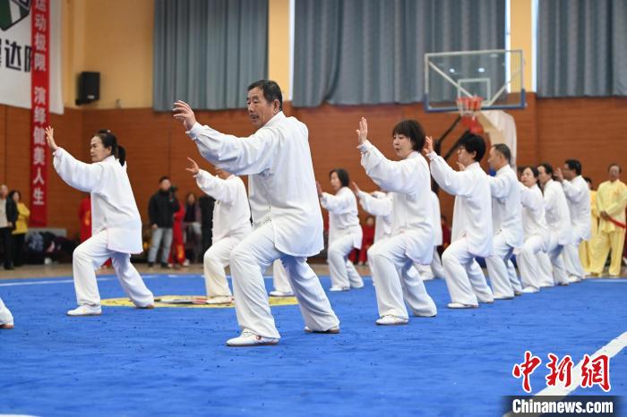 内蒙古呼和浩特市,武术爱好者演练陈式新架32式太极拳。 中新网 记者 刘文华 摄
