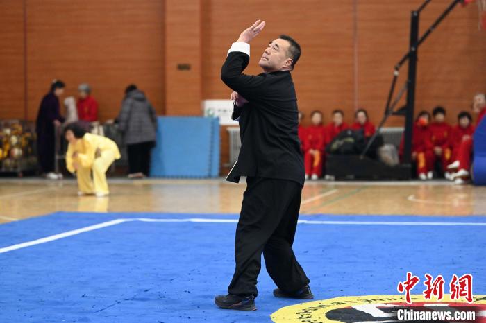 内蒙古呼和浩特市,武术家演练陈式太极拳。 中新网 记者 刘文华 摄