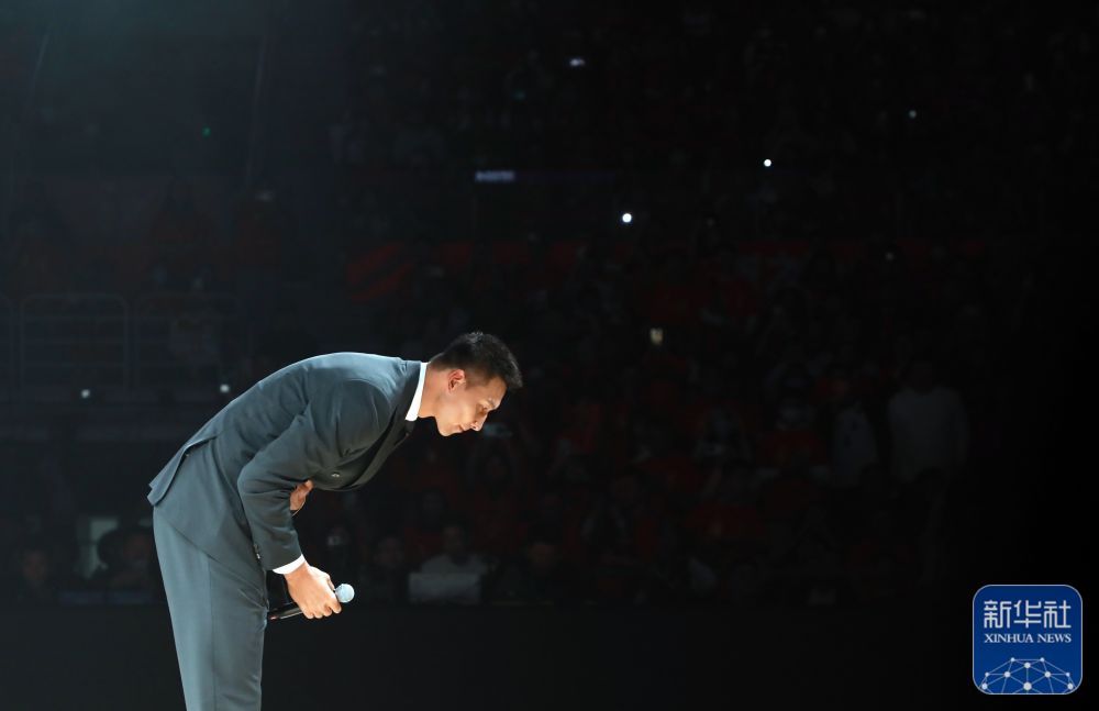易建联向观众鞠躬致意。