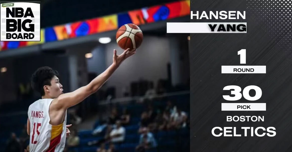央视网消息:北京时间1月4日,据主流选秀网站NBA Big Board预测,中国球员杨瀚森预计将在首轮第30顺位被凯尔特人队选中。