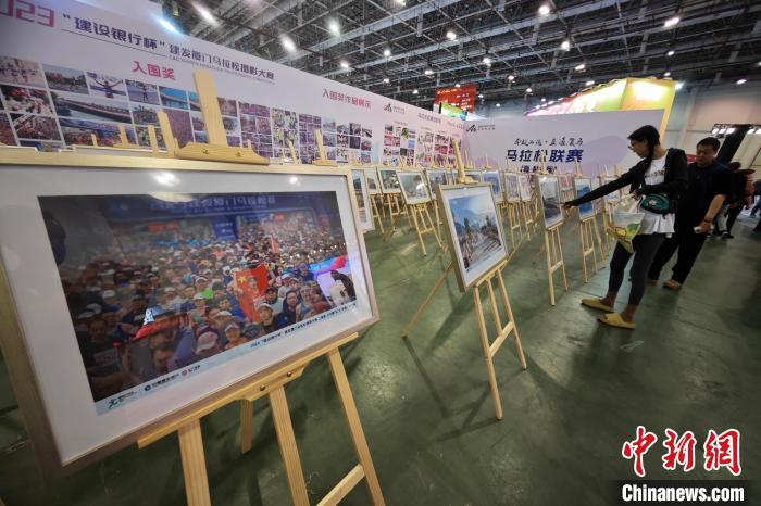 民众观看厦门马拉松摄影大赛。 中新网记者王东明摄