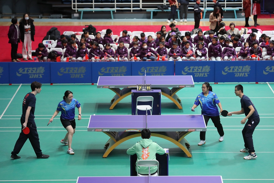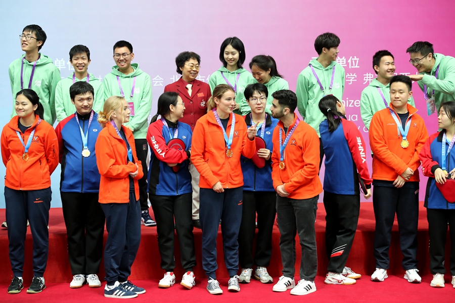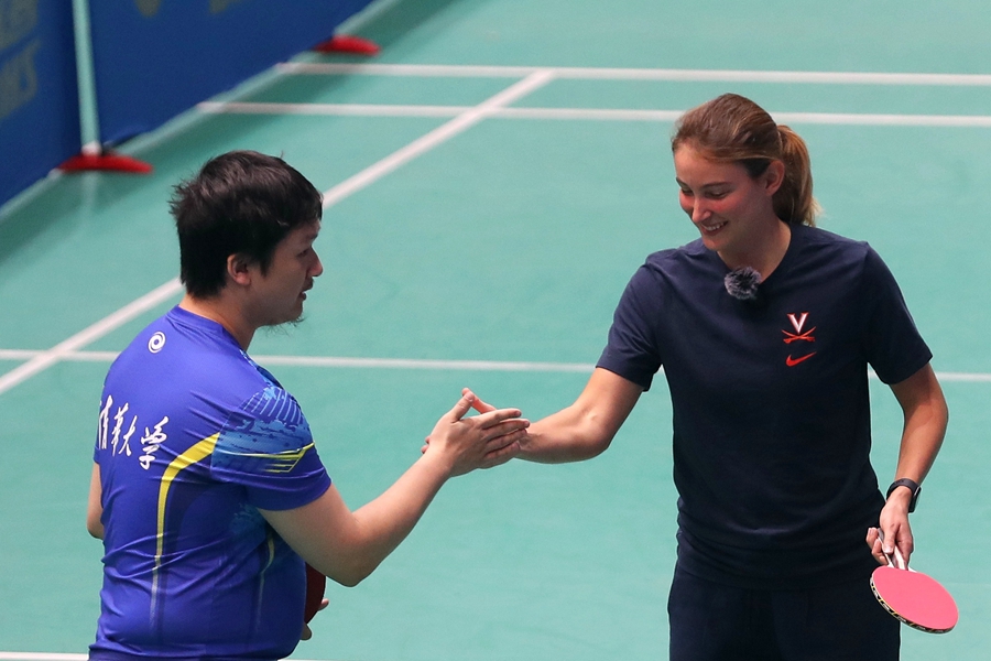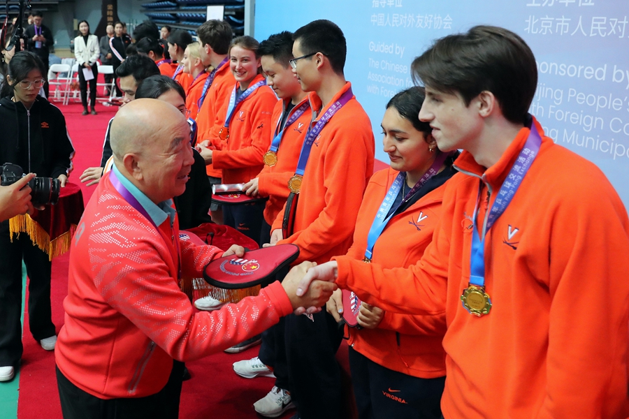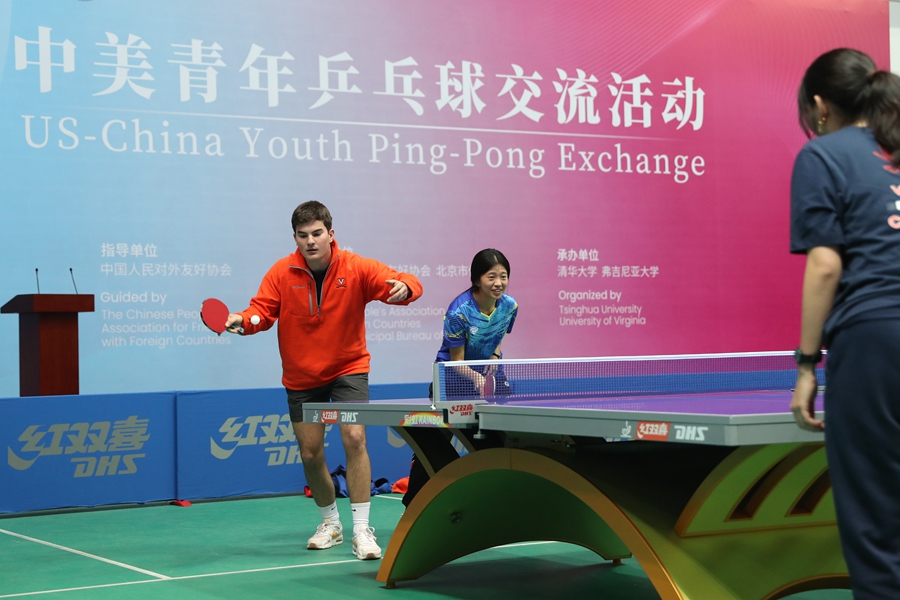 中国日报1月7日电(记者王壮飞)2024年1月6日,北京,一场别开生面的中美青年乒乓球友谊赛在清华大学综合体育馆打响,来自美国弗吉尼亚大学和清华大学的乒乓球爱好者带来“友谊第一、比赛第二”的精彩对决。