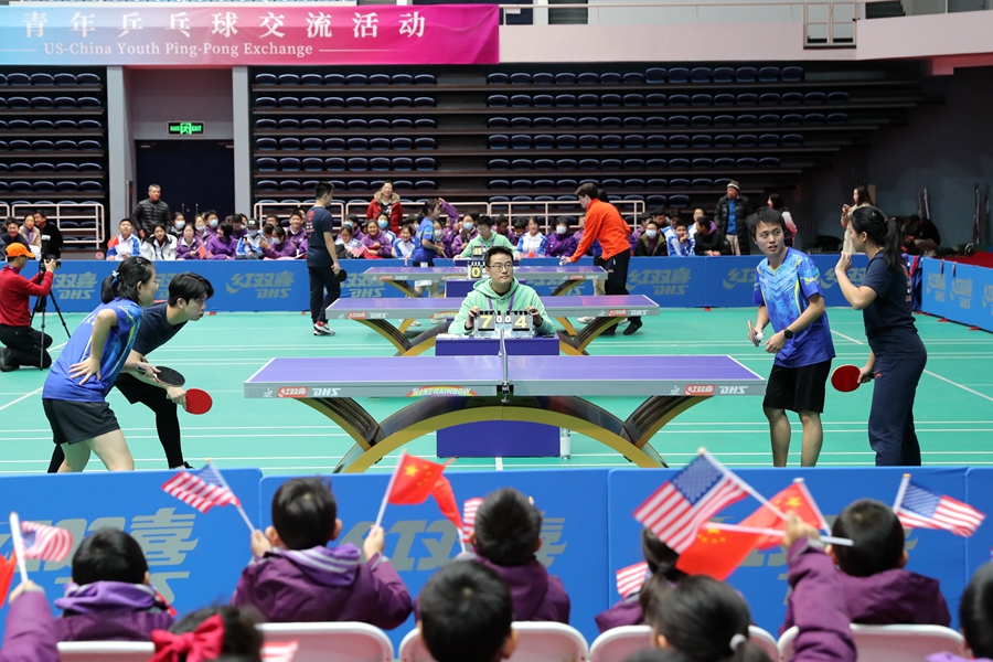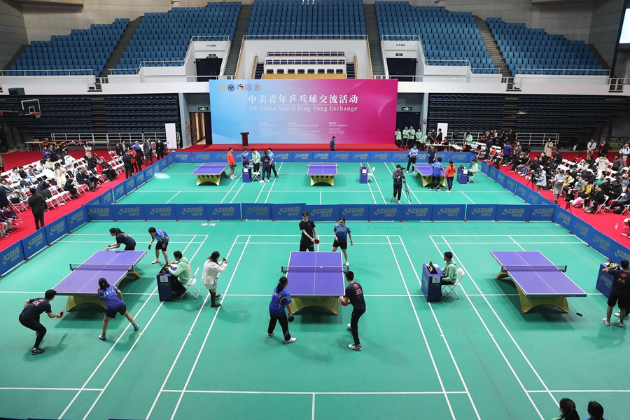 1月6日,中美青年乒乓球交流活动在清华大学综合体育馆举行。中国日报记者王壮飞摄