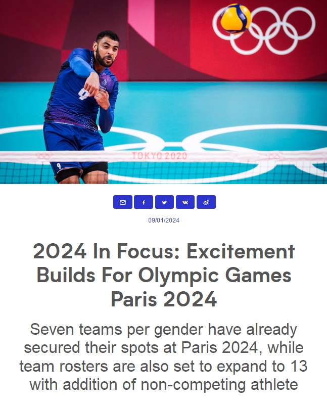 此外,国际排联还透露了巴黎奥运会排球比赛的分组办法。男排12支球队将按照2024年6月24日的世界排名进行分组,女排12支球队则将按照2024年6月17日的世界排名分组。