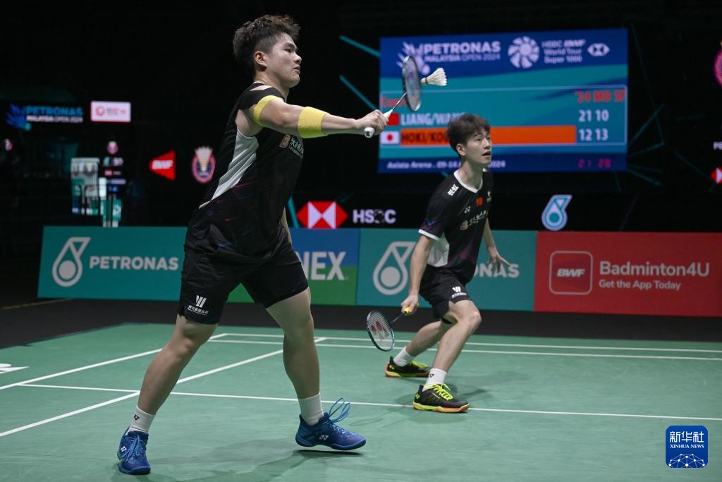 当日,在吉隆坡举行的2024年马来西亚羽毛球公开赛男双半决赛中,中国组合梁伟铿/王昶2比1战胜日本组合保木卓朗/小林优吾,晋级决赛。
