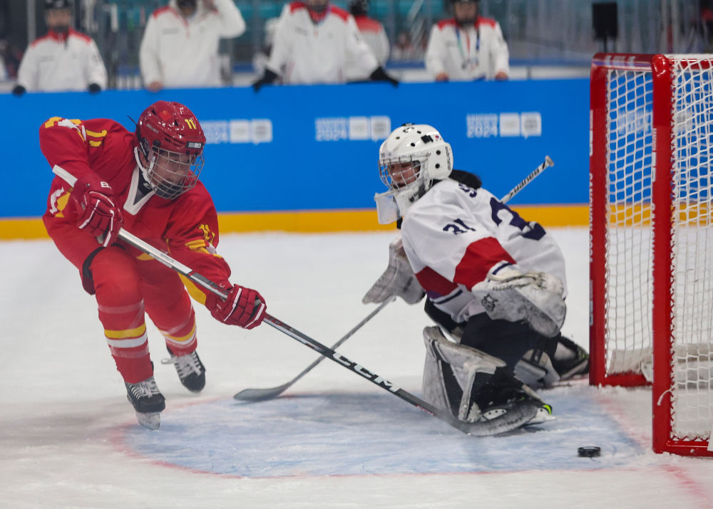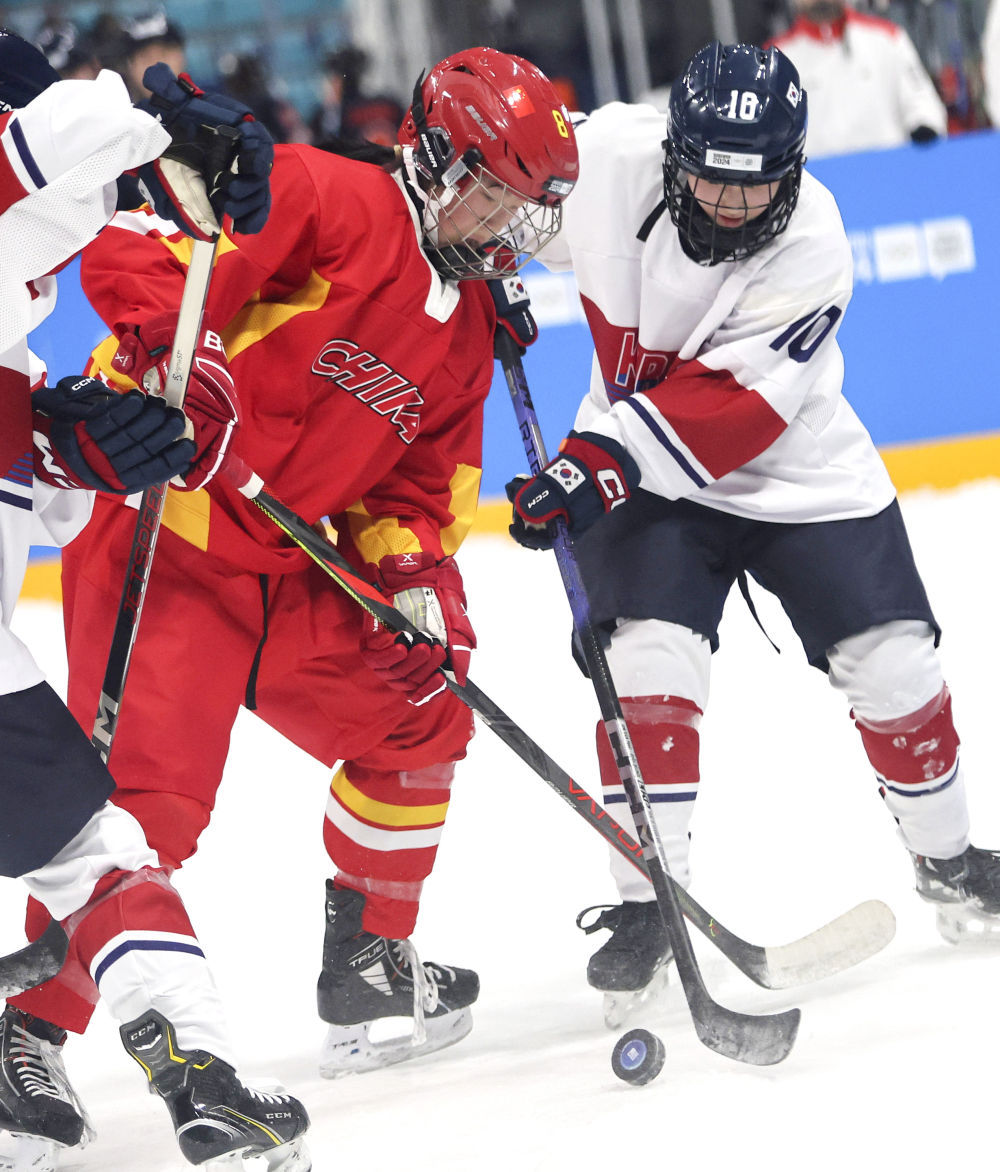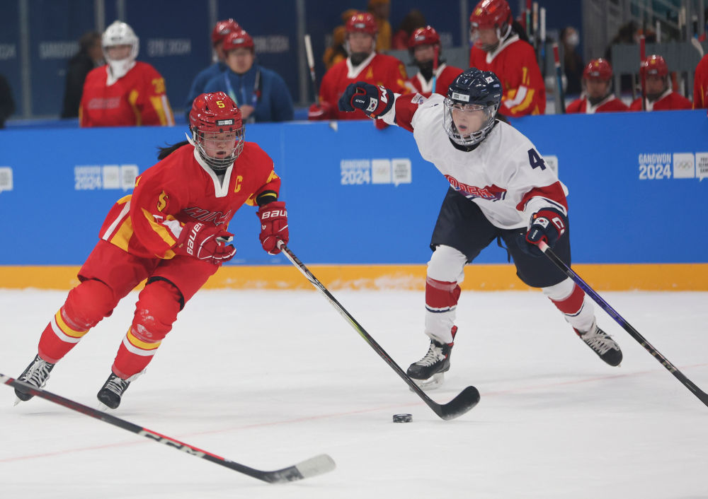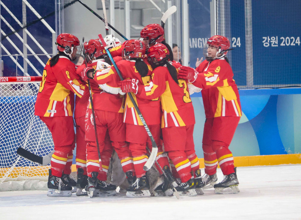 1月20日,在韩国江陵进行的2024年江原道冬青奥会女子冰球3对3预赛中,中国队6比3战胜韩国队。