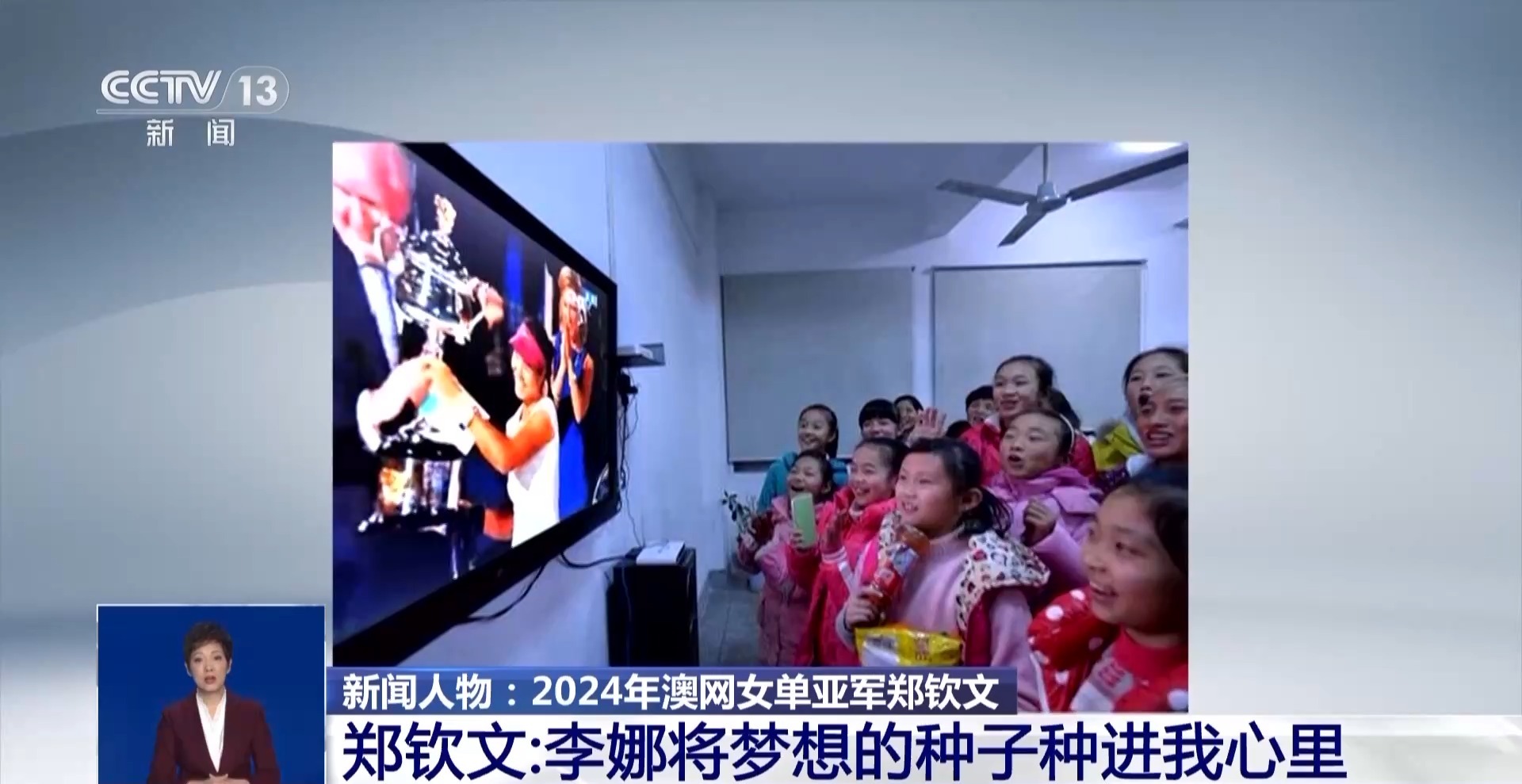 当李娜夺冠时,电视机前的郑钦文和小伙伴们正在欢呼雀跃。郑钦文说,当时那场比赛她后来看了不下十次,她说:“李娜是我们的偶像,我不会忘记她在澳网的那场比赛,是她将梦想的种子种进了我的心里”。