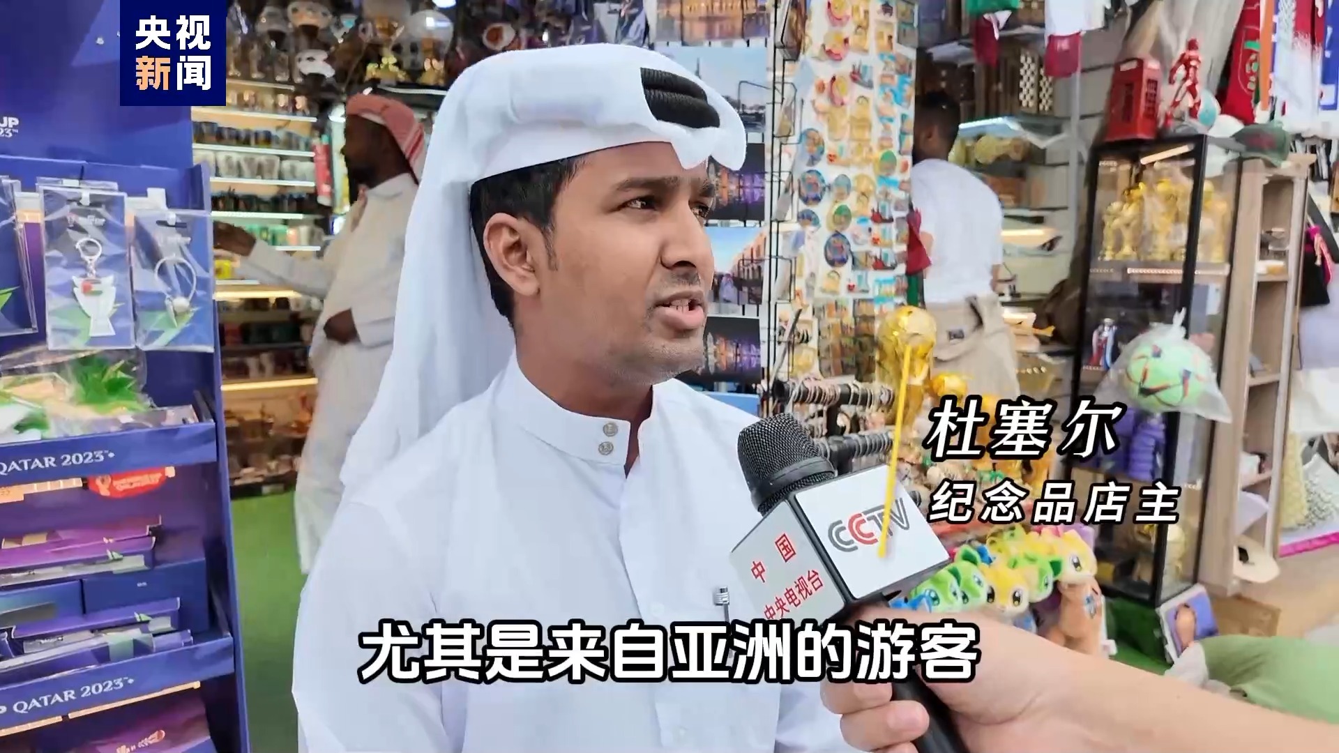 纪念品店主杜塞尔:瓦齐夫老市场是卡塔尔最著名的景点,这里有最好的店铺,是游客来卡塔尔最喜欢的地点。最近有很多游客前来,尤其是来自亚洲的游客。我们的生意在亚洲杯期间变得非常好。