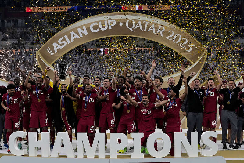 东道主卡塔尔队在本届亚洲杯决赛中3:1战胜约旦队成功卫冕。视觉中国供图