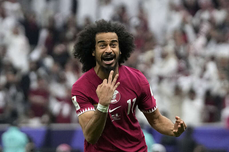 亚洲杯决赛,卡塔尔队前锋阿菲夫完成单场比赛点球“帽子戏法”。视觉中国供图