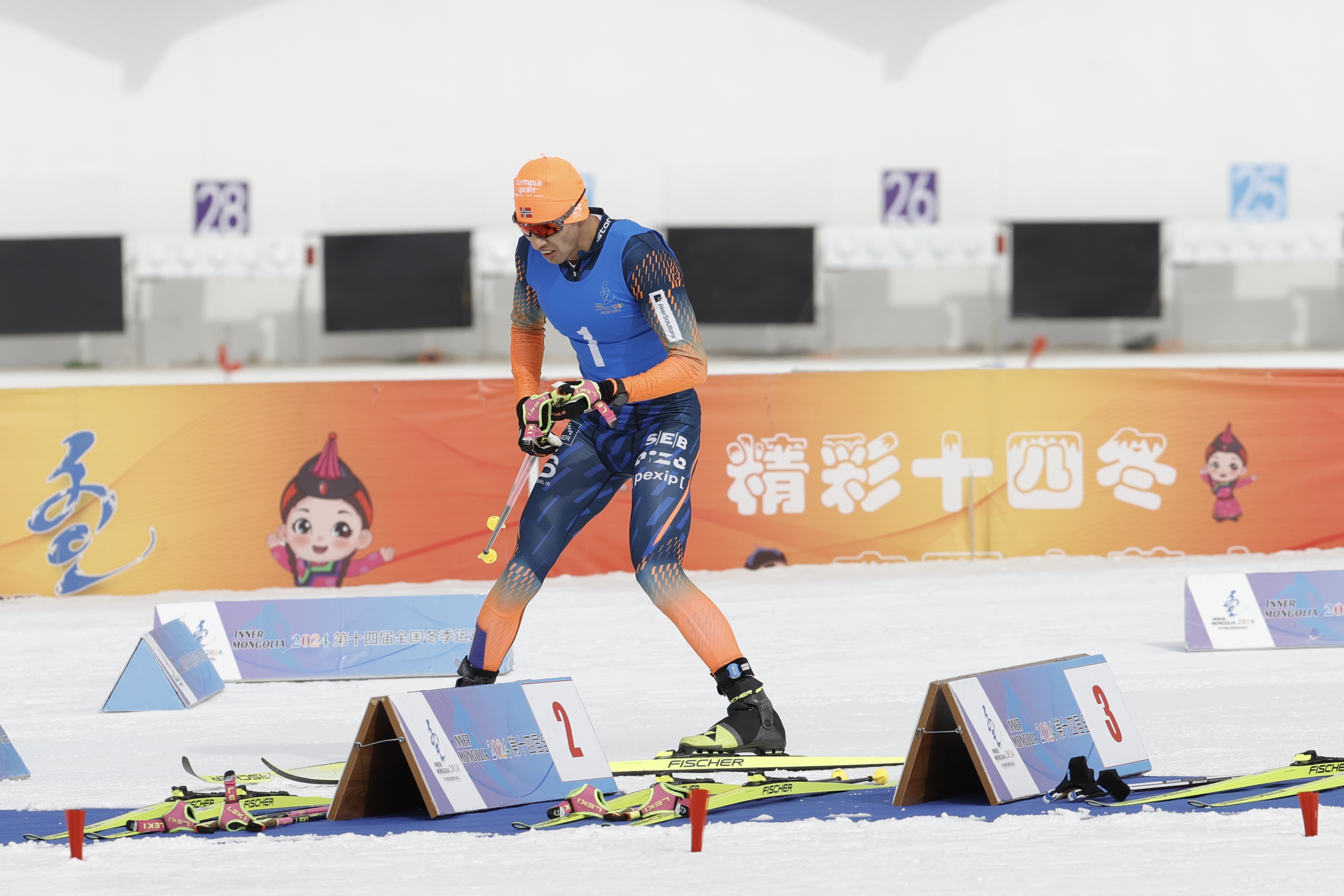重庆队运动员王强身穿1号号码布,正在做出发前准备。华龙网特派记者 石涛 摄