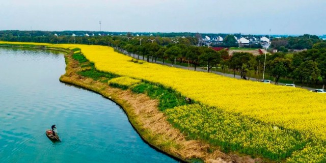 看不够的阳澄湖好风光,碧蓝的水晶天下,微风翻涌起层层叠叠的油菜花海。