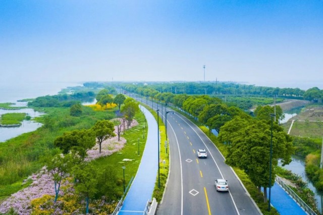在澄林路上肆意奔跑,一边是浩瀚湖畔的开阔湿地,一边是树荫掩映的江南渔家,畅游其中好不自在,自然、人文胜景让人目不暇接!