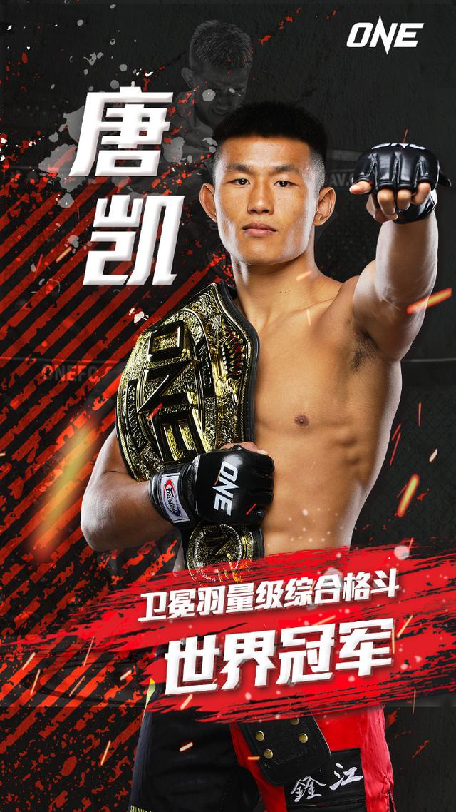 3月1日,国际知名体育ONE冠军赛将在卡塔尔卢赛尔体育馆上演。联合主赛羽量级世界冠军统一战中,中国首位男子综合格斗世界冠军,来自湖南邵阳的唐凯将接受羽量级临时世界冠军丹勒的挑战。最终唐凯直接击倒对手,成功卫冕!