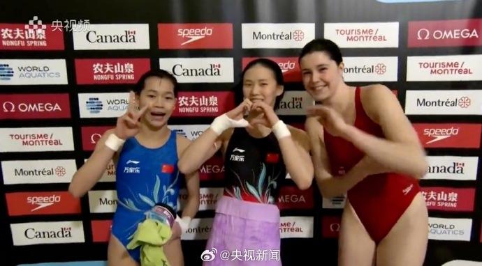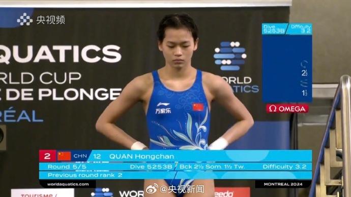 据央视新闻微博消息,刚刚,跳水世界杯蒙特利尔站,女子10米台,陈芋汐冠军,全红婵亚军,祝贺!