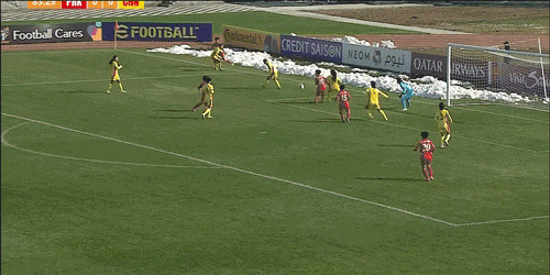 比赛第6分钟,中国队左路起传中,卢家玉头球破门,但边裁举旗示意越位。根据回放定格帧,这一次越位并不十分明显,如果有VAR的话或许只能精准划线才能确定是否越位。