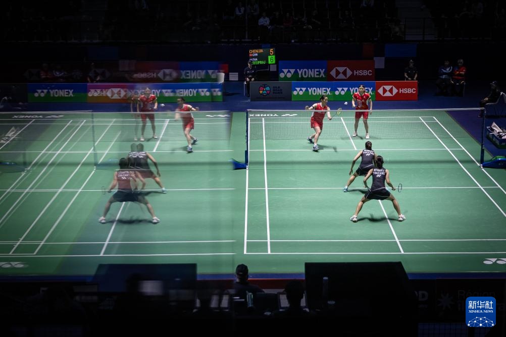 3月5日,陈清晨(左)/贾一凡在比赛中。新华社发(奥雷利安·莫里萨尔摄)