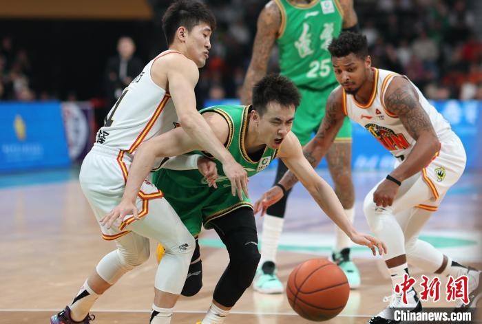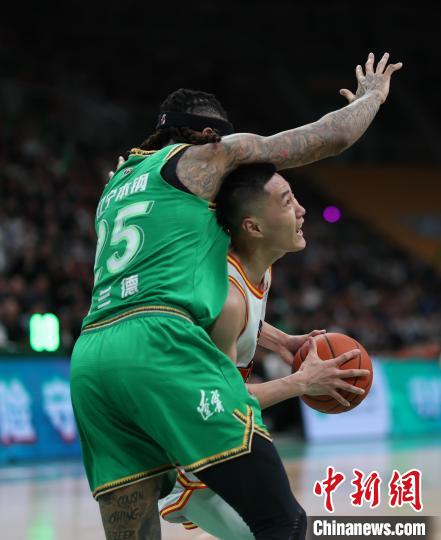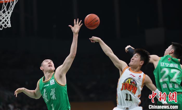 图为辽宁本钢队球员李晓旭(右)在比赛中拼抢。中新网记者 于海洋 摄