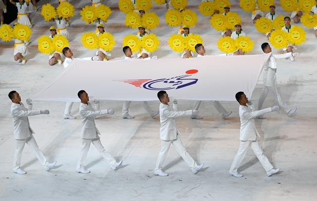 资料图:2021年10月22日,全国第十一届残运会暨第八届特奥会开幕式在西安举行。图为旗手护送中华人民共和国残疾人运动会会旗进入开幕式现场。新华社记者 李一博 摄