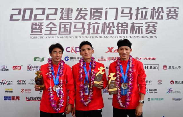 图为2022年厦门马拉松中,丰配友(中)和吴向东(右)在颁奖仪式后合影。两人分别于2023年12月和2024年2月达标巴黎奥运会。新华社记者 魏培全 摄从发愁有没有人能去巴黎