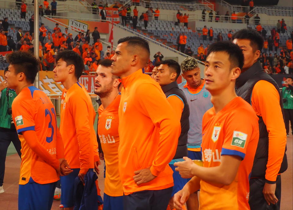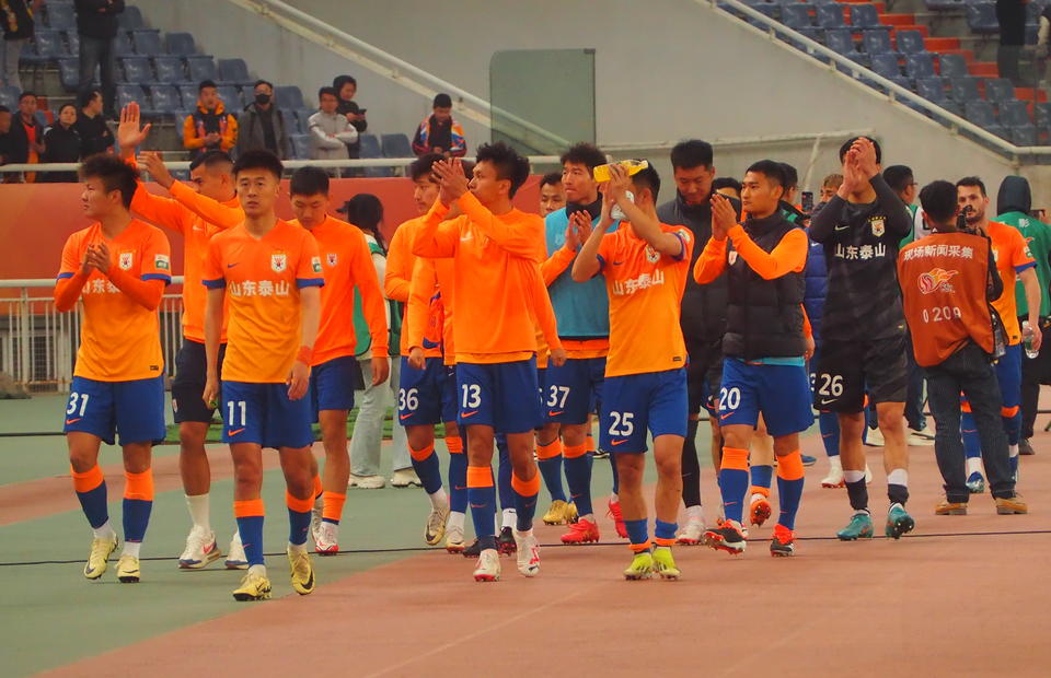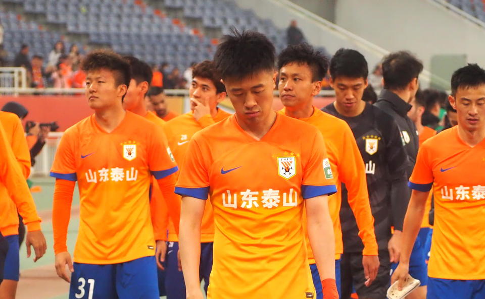 4月9日晚,济南奥体中心体育场,泰山队主场迎战河南俱乐部酒祖杜康队。泰山队在人数占优势的情况下被对手2:2逼平,队员们赛后十分沮丧。