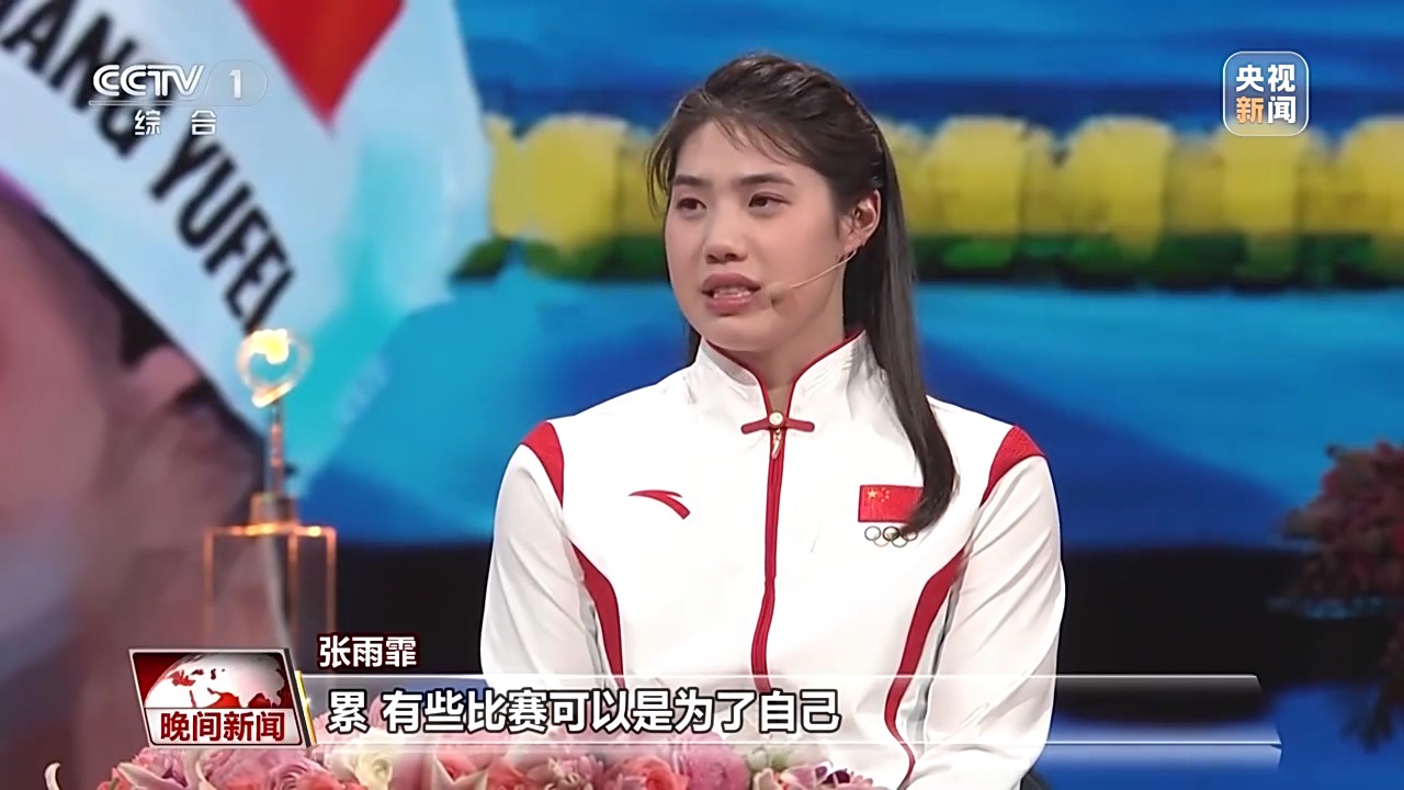 张雨霏:累。有些比赛可以是为了自己,但有些比赛是为了国家。如果只谈自己的理想,我可以去说我喜欢、我不喜欢,我想做或者我不想做。但是如果将国家责任扛在肩上的话,那就只有一个字,做!