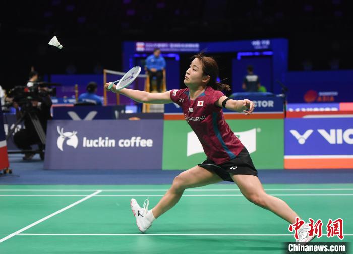 4月10日,2024年亚洲羽毛球锦标赛进入正赛首日较量。图为日本选手奥原希望在比赛中。 中新社记者王刚摄