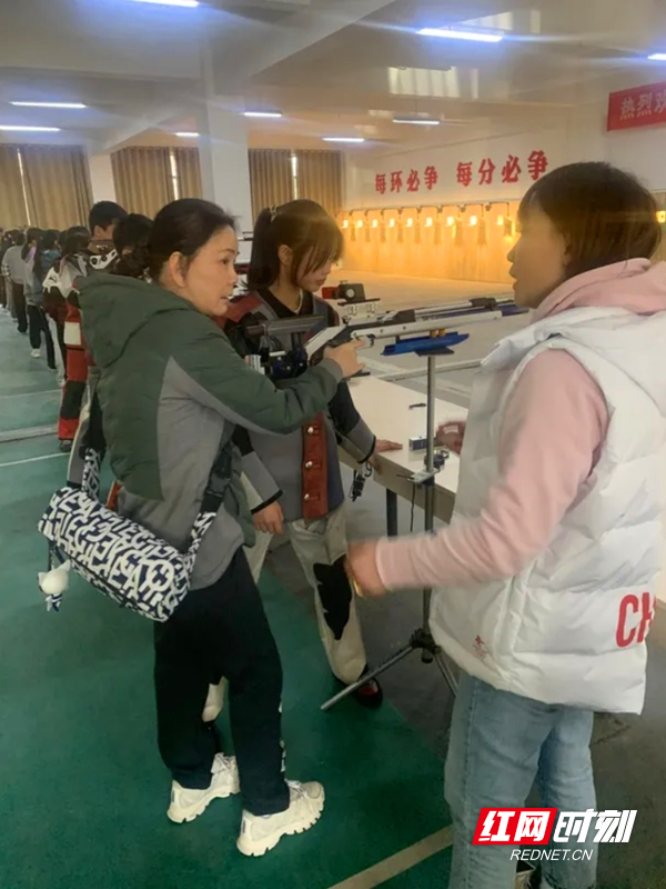 资料图:2021年11月22日,张秋萍到岳阳市体育运动学校,指导、考察当地射击运动人才。供图/湖南省射击运动管理中心