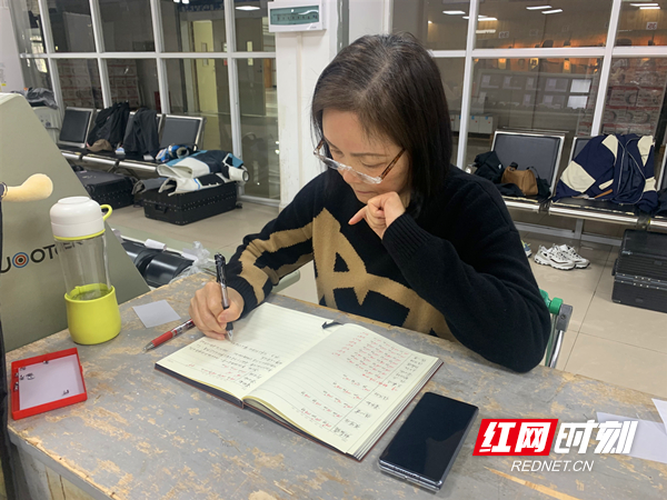 张秋萍在记录运动员们的训练成绩。摄影/符洹雨