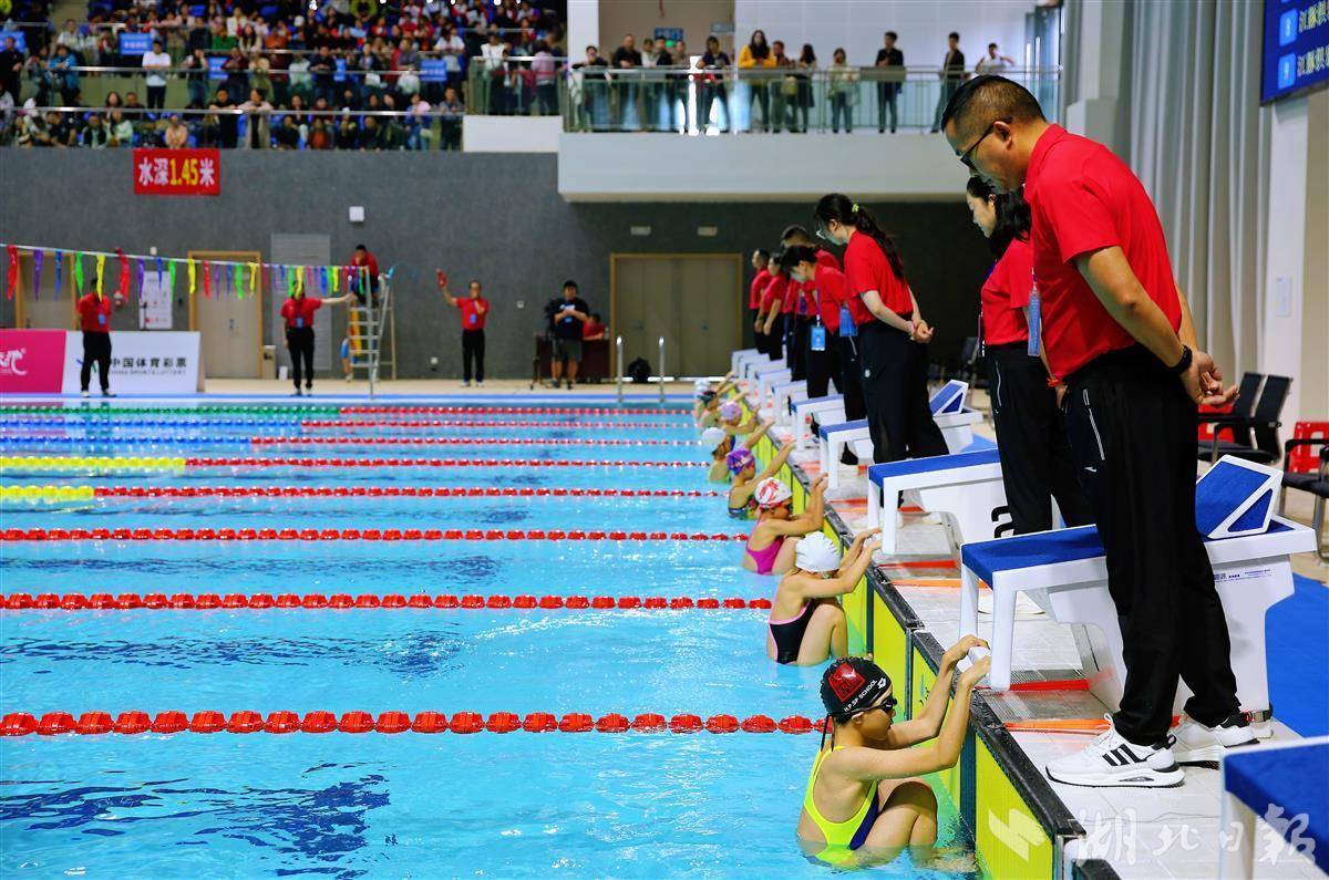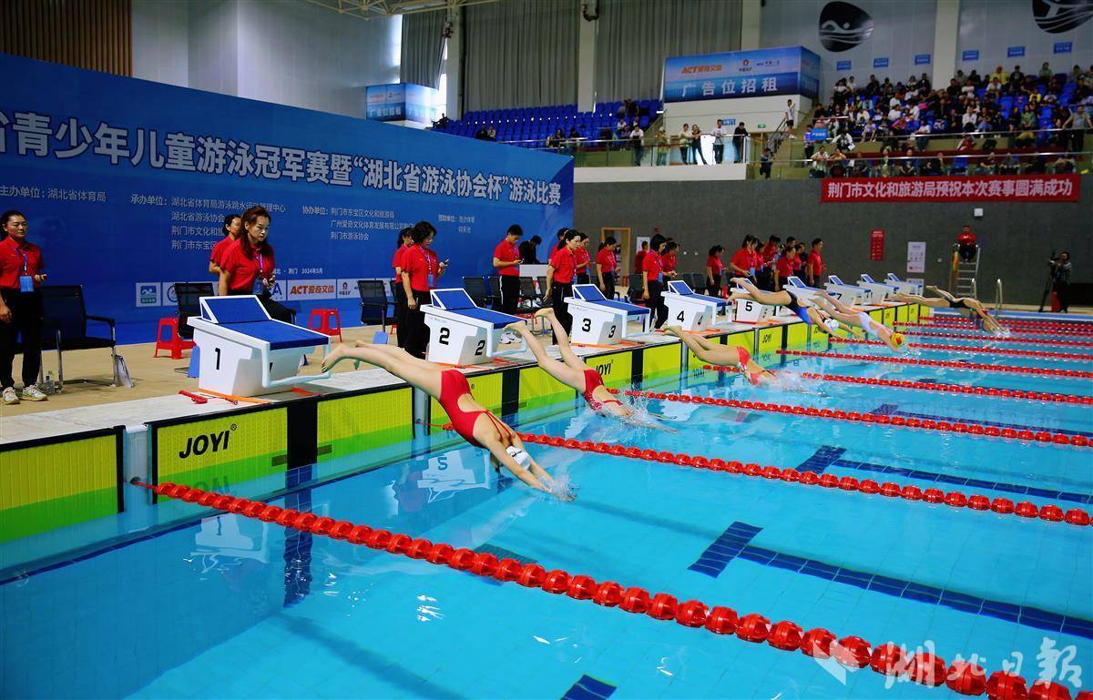 湖北日报讯(记者张诗秋、通讯员朱俊波)随着裁判哨声响起,游泳赛道水花四溅、人影起伏,小运动员们竞相展现矫健身姿,在碧水蓝池中呈现出一道速度与技术较量的风景线。5月2日,2024年湖北省青少年儿童游泳冠军赛暨“湖北省游泳协会杯”游泳比赛在荆门市东宝文体中心游泳馆拉开战幕,来自全省的1700余名游泳健儿参加此次为期4天的角逐。