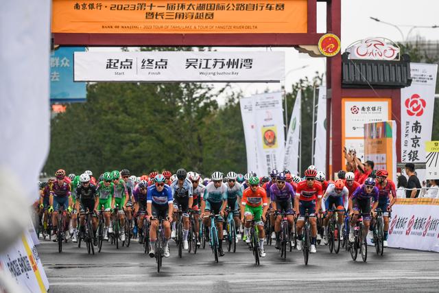 图为2023年9月16日,环太湖国际公路自行车赛暨长三角穿越赛(吴江站)在江苏省苏州市吴江区举行。新华社记者 李博 摄