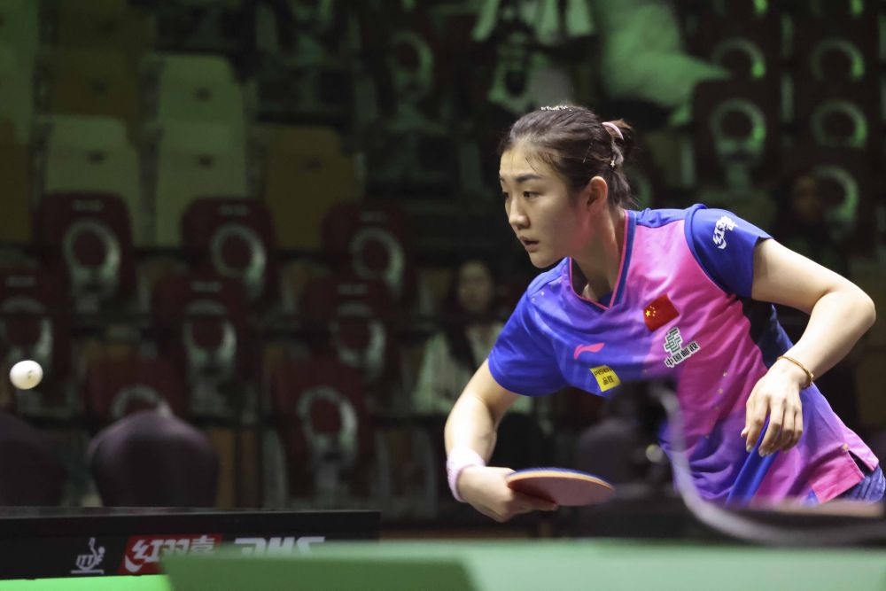 ↑中国选手陈梦在比赛中回球。