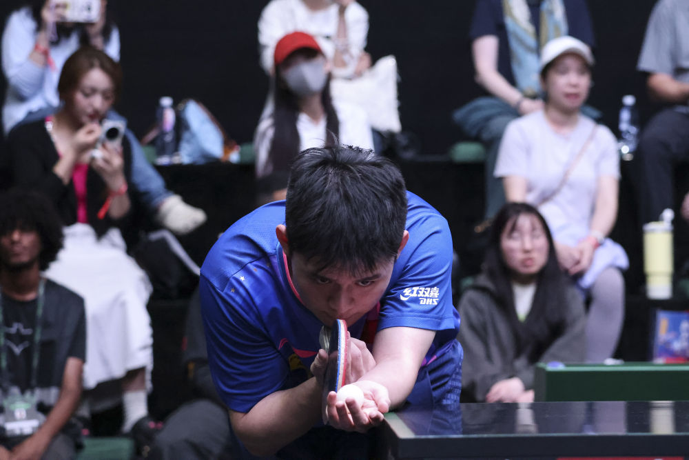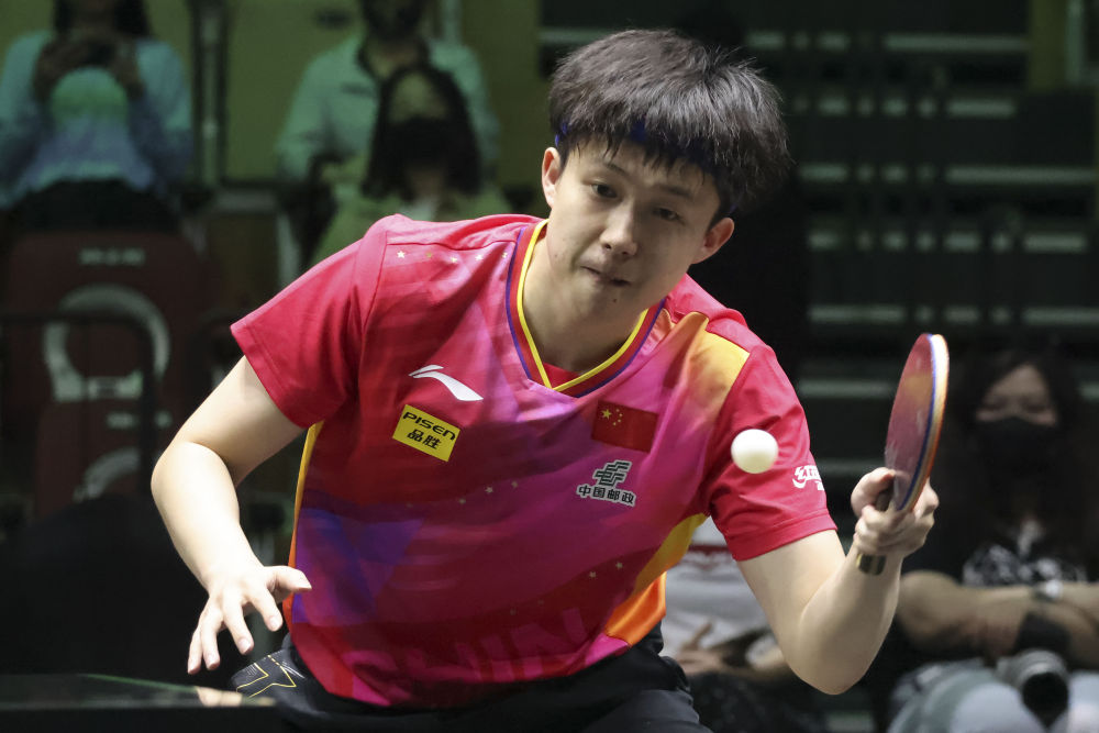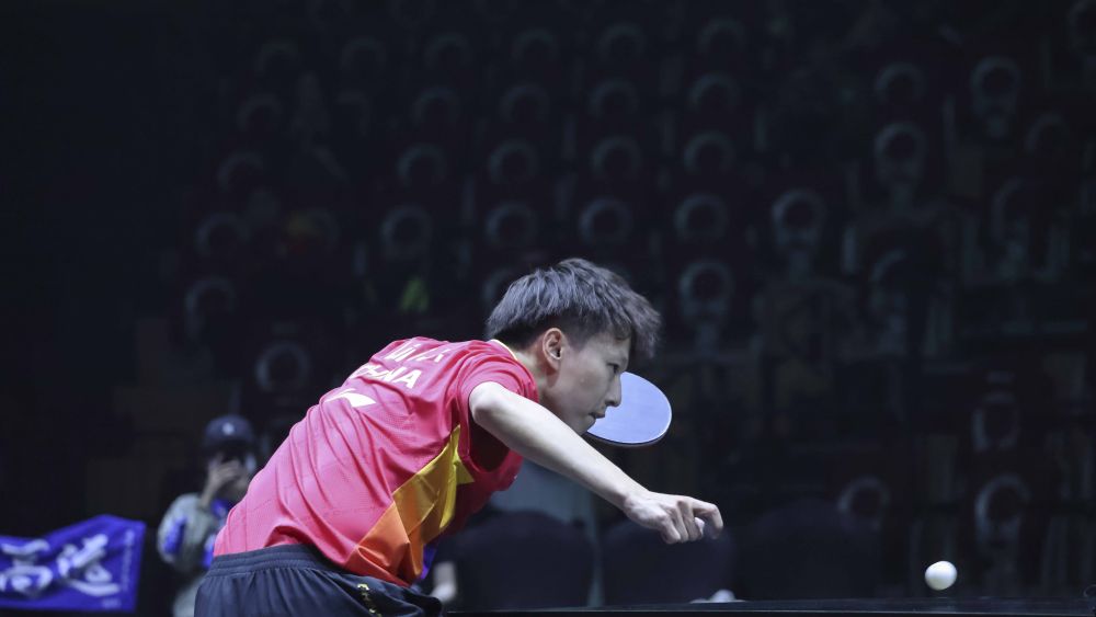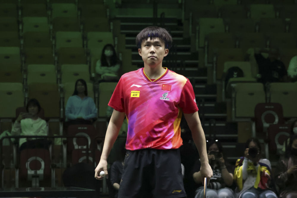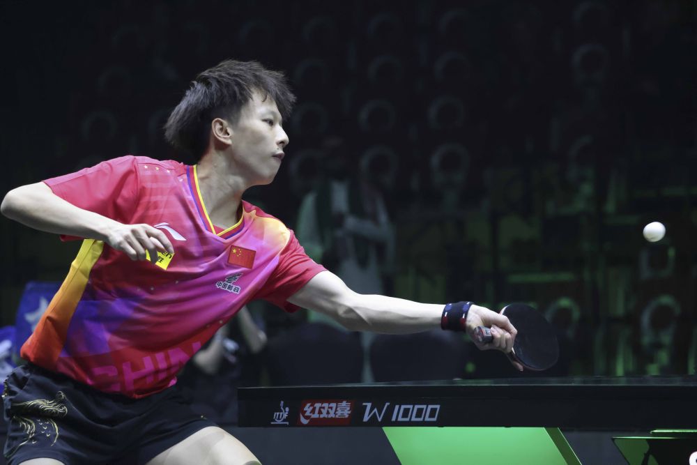 ↑中国选手王楚钦在比赛中。