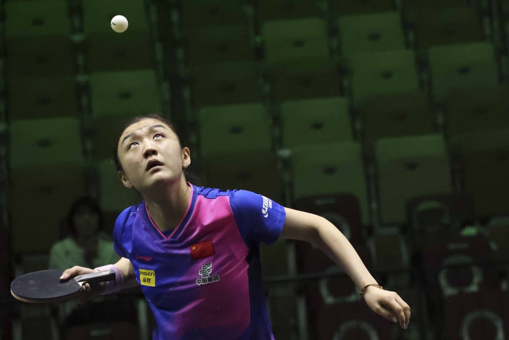 ↑中国选手王曼昱在比赛中。