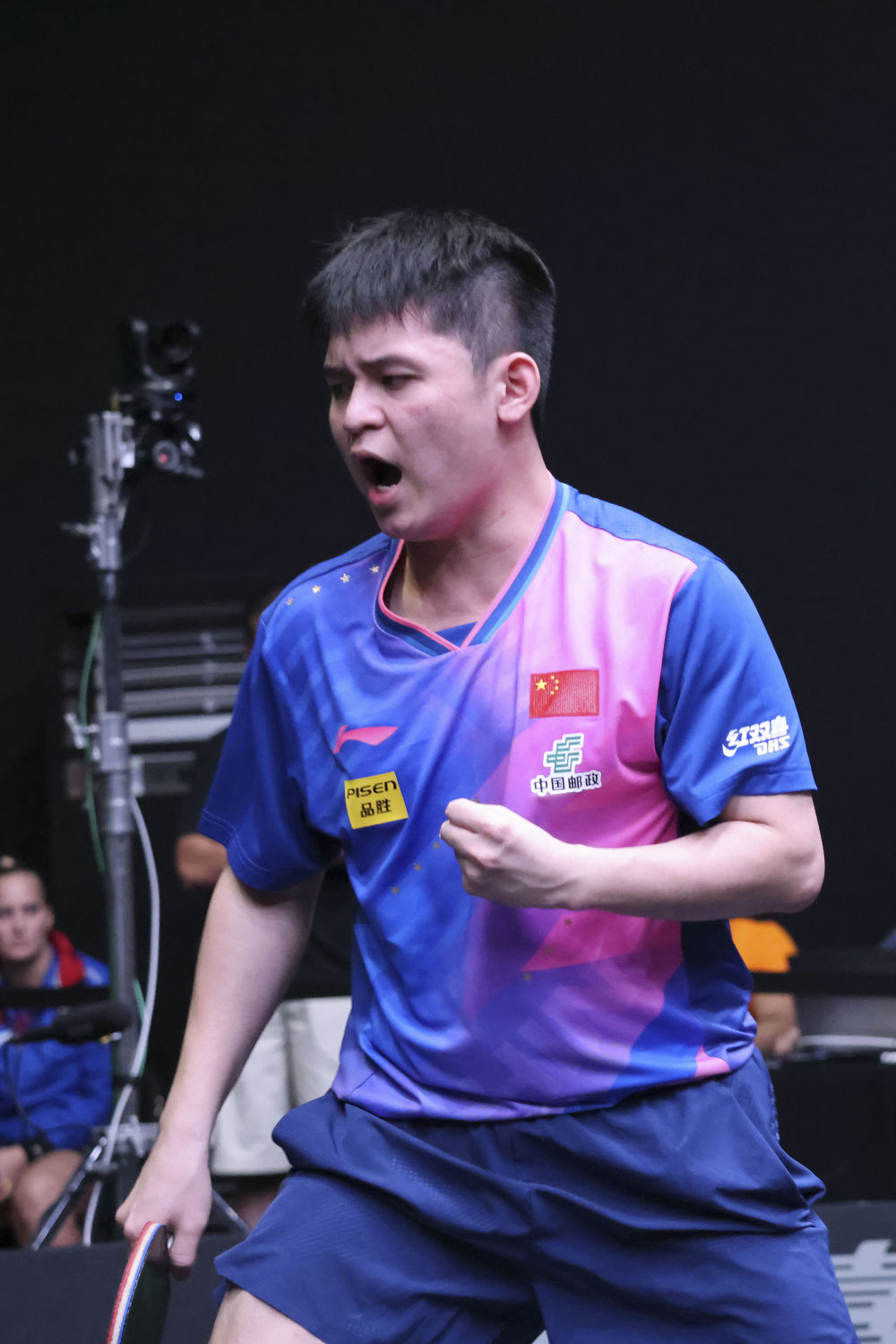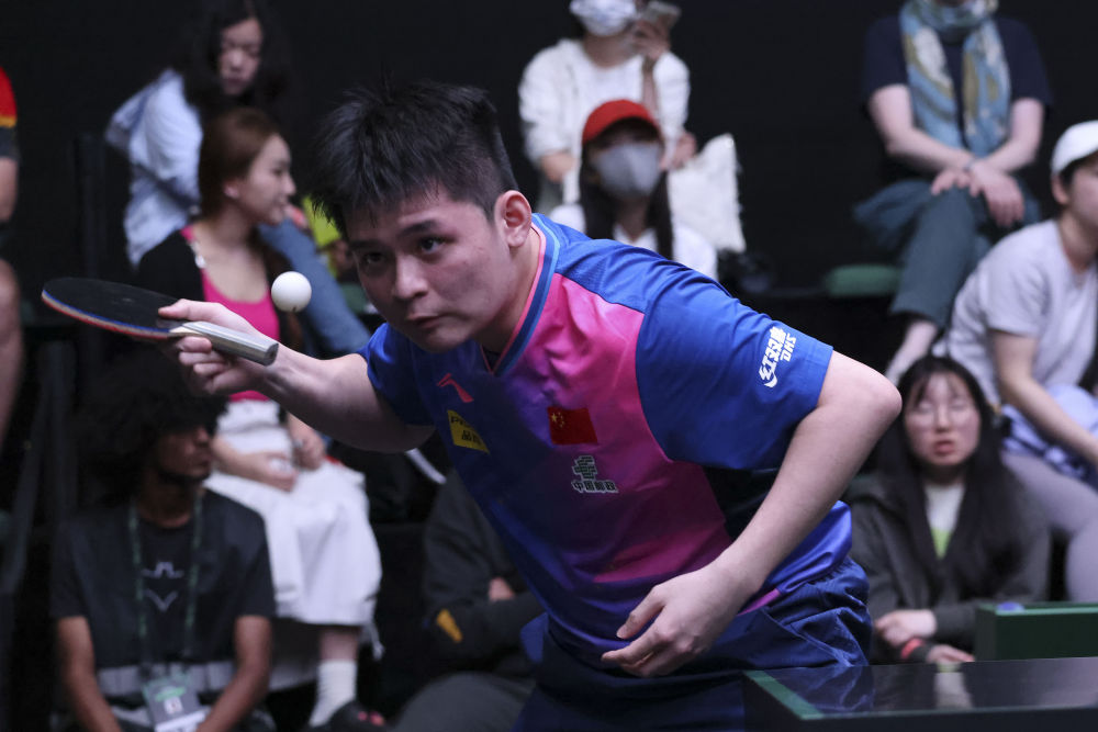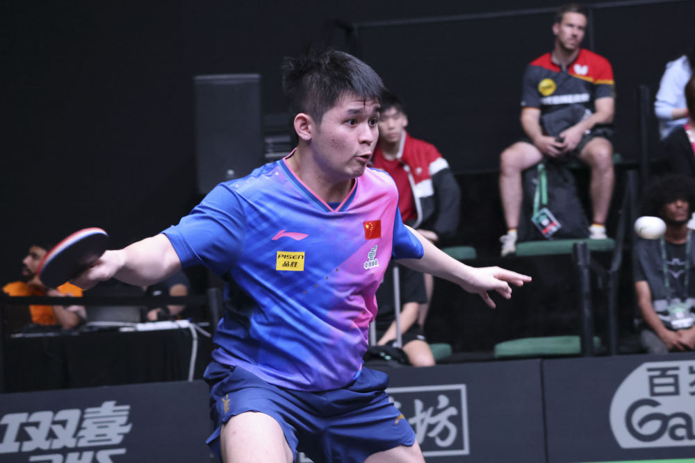 ↑中国选手林诗栋在比赛中。