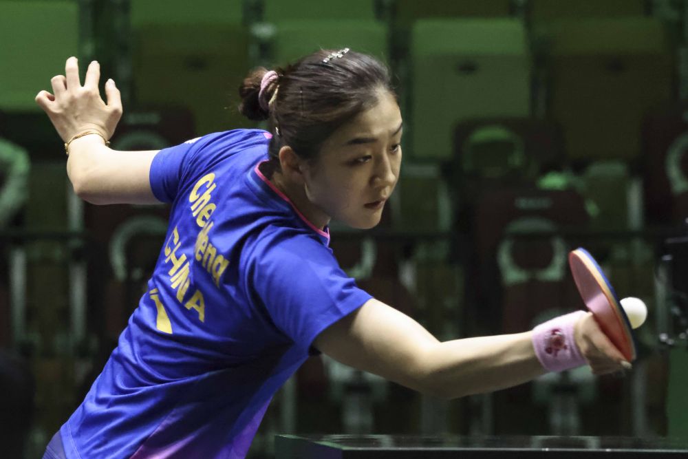 ↑中国选手陈梦在比赛中。