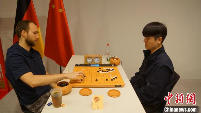 5月4日,第十二届柏林“中国杯”围棋大赛的冠军金道协(右)和亚军维尔迪克(左)对弈。柏林中国文化中心供图