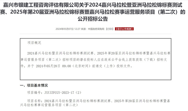 近日,《关于2024嘉兴马拉松暨亚洲马拉松锦标赛测试赛、2025年第20届亚洲马拉松锦标赛暨嘉兴马拉松的公开招标公告》发布,备受关注的嘉兴马拉松消息来了。