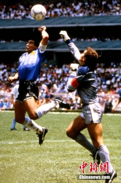 1/4决赛面对英格兰队,比赛行至下半时,马拉多纳前场抢点高高跃起,举起前臂将皮球送进了对方球门。裁判对此没有任何表示,进球有效。赛后马拉多纳表示,那个球是在“一点马拉多纳的头和一点上帝的手”帮助下进的。“上帝之手”由此得名。
