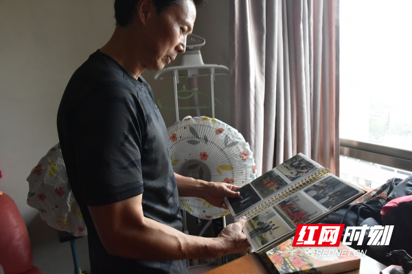程坚在翻看年轻时的相册。摄影/符洹雨